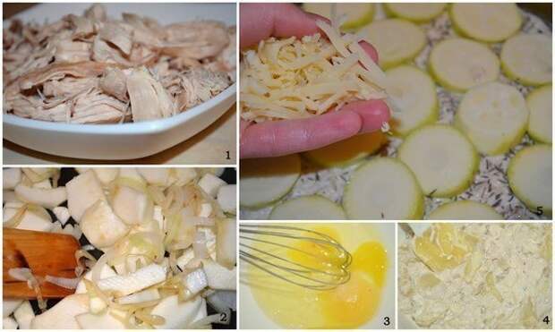 4) добавить обжаренные овощи и курицу. Посолить и поперчить и все вместе размешать