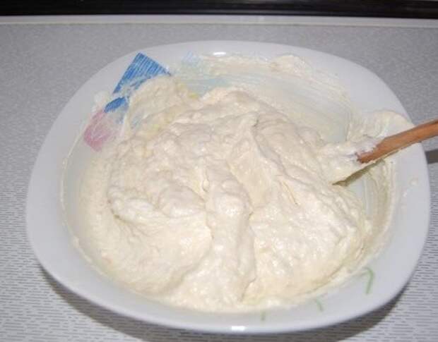Потом в крем всыпать кокосовую стружку и опять всё хорошо перемешать.