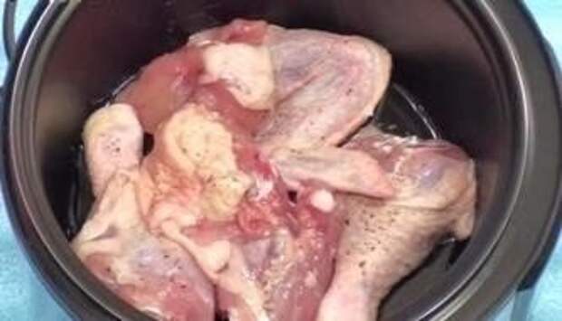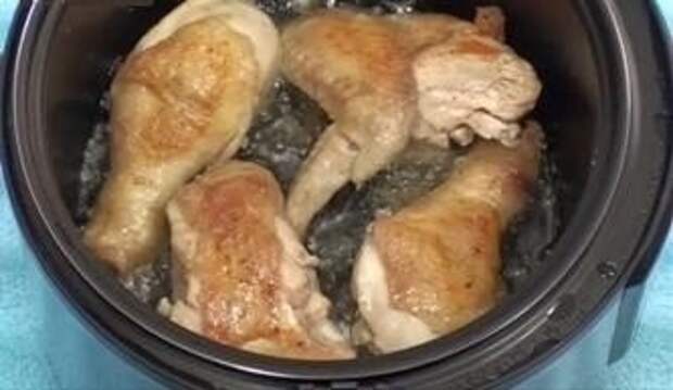 Жарим кусочки курицы в закрытой мультиварке, переворачиваем их через 10-15 мин. и обжариваем с другой стороны еще 15 мин. при закрытой крышке.