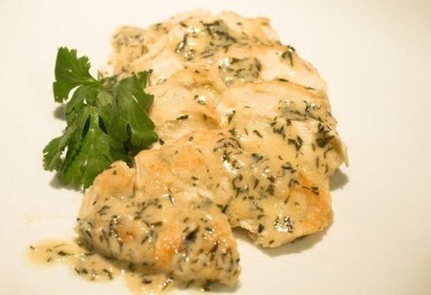 За три минуты до сигнала посыпаем курицу мелко нарезанным укропом. Все! Мягкая ароматная курица в мультиварке под сметанным соусом готова.