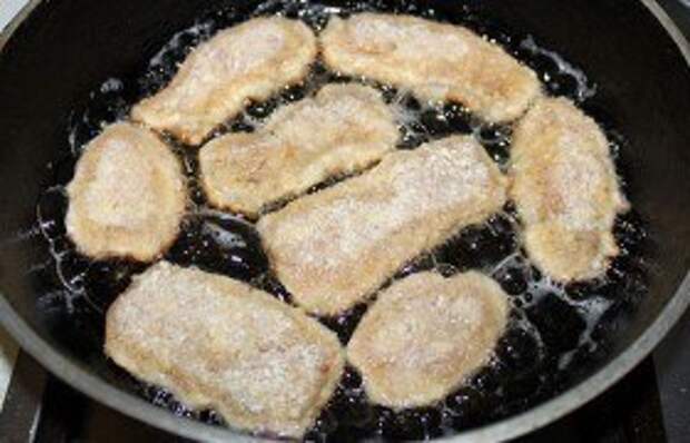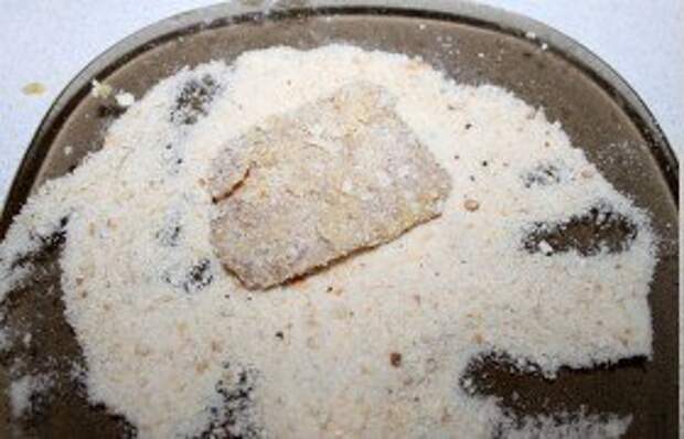 ... и панируем в сухарях. Вот сухари больше подойдут свои , из перемолотых сухих ломтиков или кусочков белого батона (хлеба). О них мы точно знаем: здесь нет лишних добавок.... и панируем в сухарях.