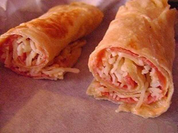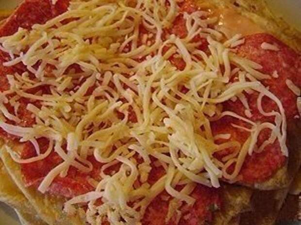 1. Лаваш смазать майонезом и кетчупом. Порезать тонко острые салями и выложить на лаваш.сверху посыпать тертым сыром, берите поострее его.